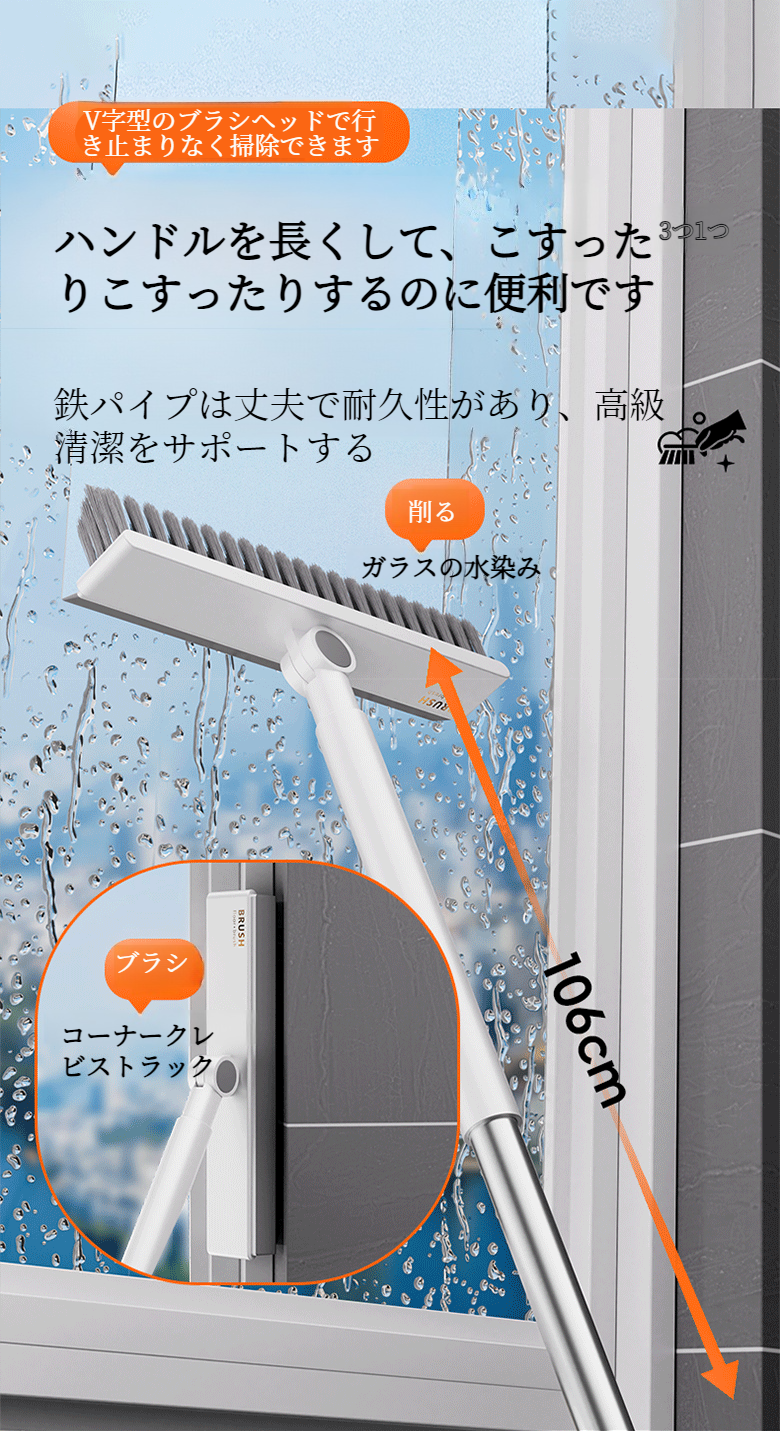 バスルーム 3in1クリーニングブラシ 柄の長いフロアブラシ 浴室用隙間ブラシ 床磨き 床磨き トイレブラシ
